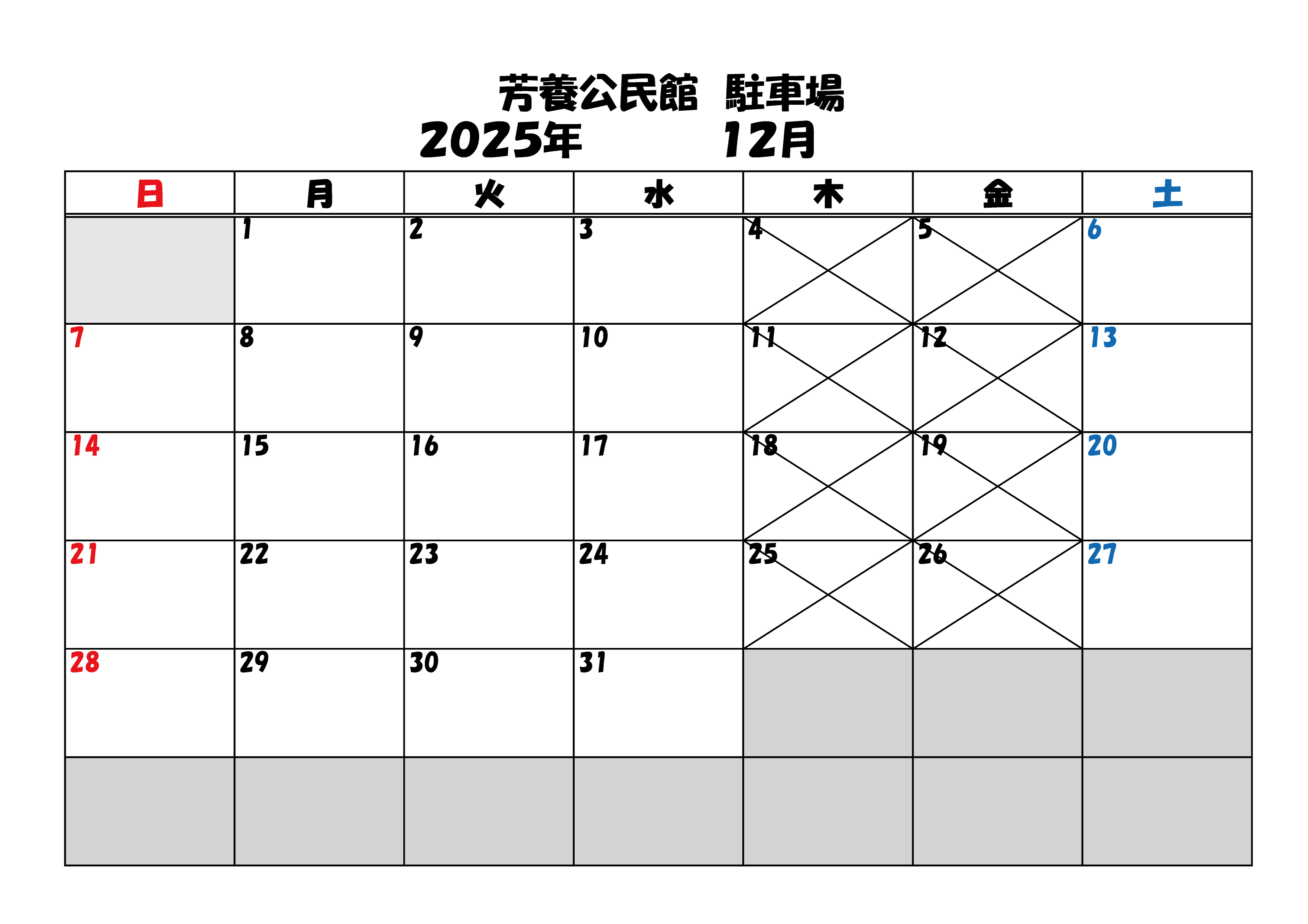 芳養駅前(公民館前)の駐車場の利用可能日について下記の通りとなっております。